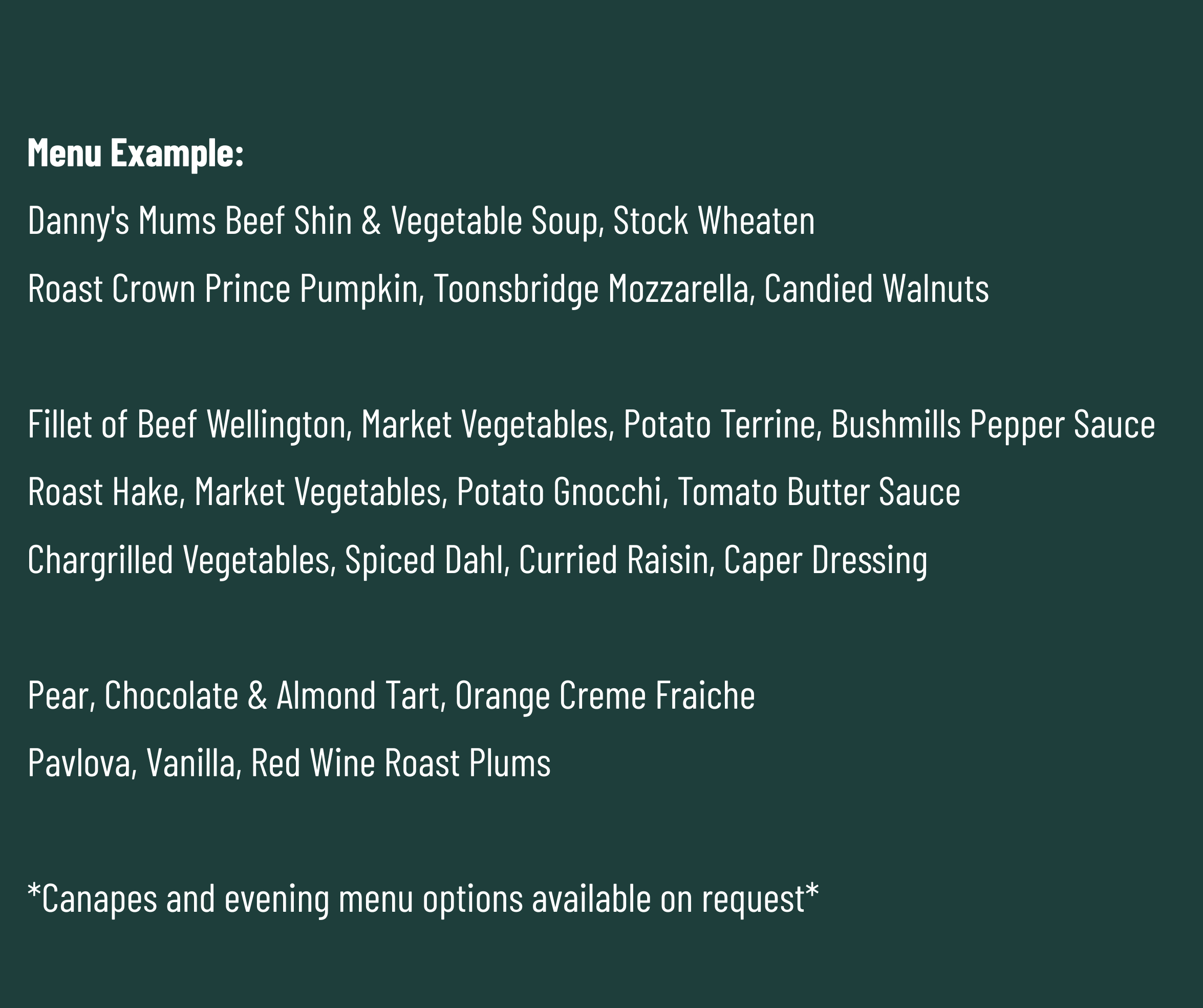 Led by renowned chef Danny Millar, our menus are crafted with passion and precision. Each dish celebrates local produce and seasonal flavours — the very best of Northern Ireland on a plate.